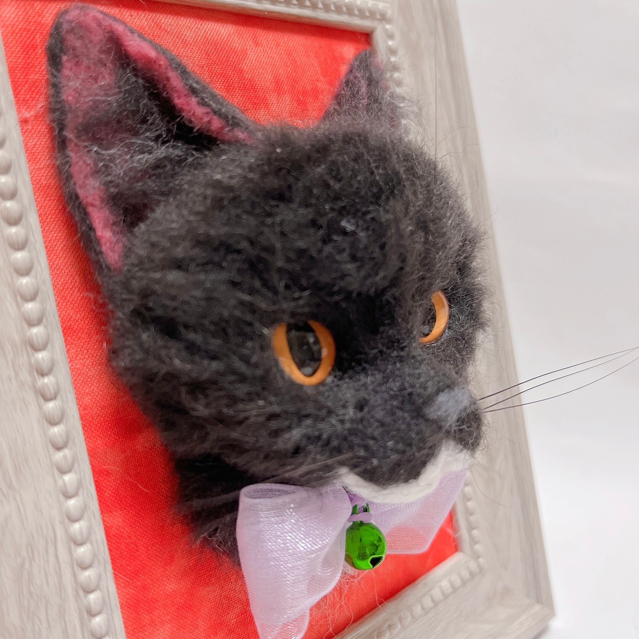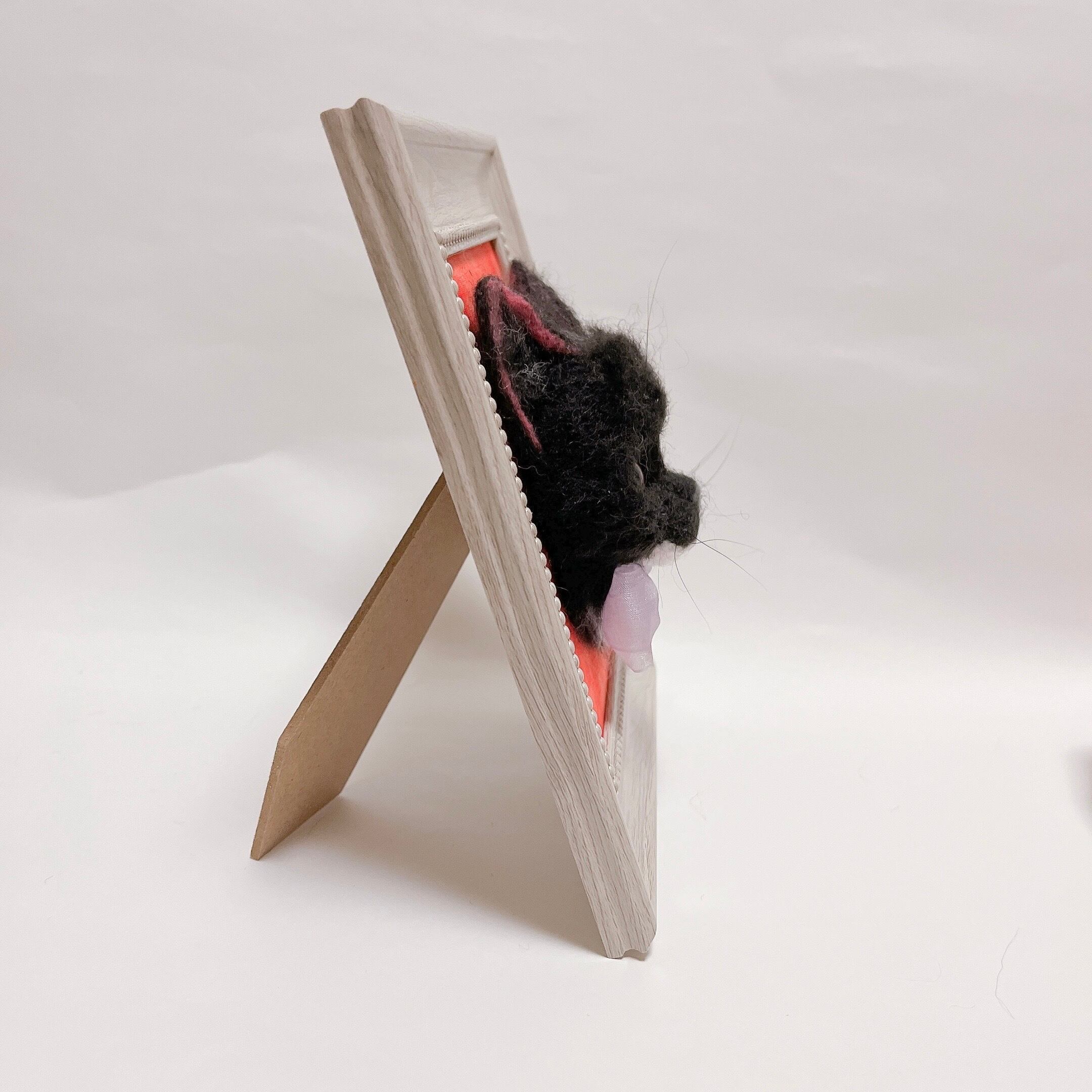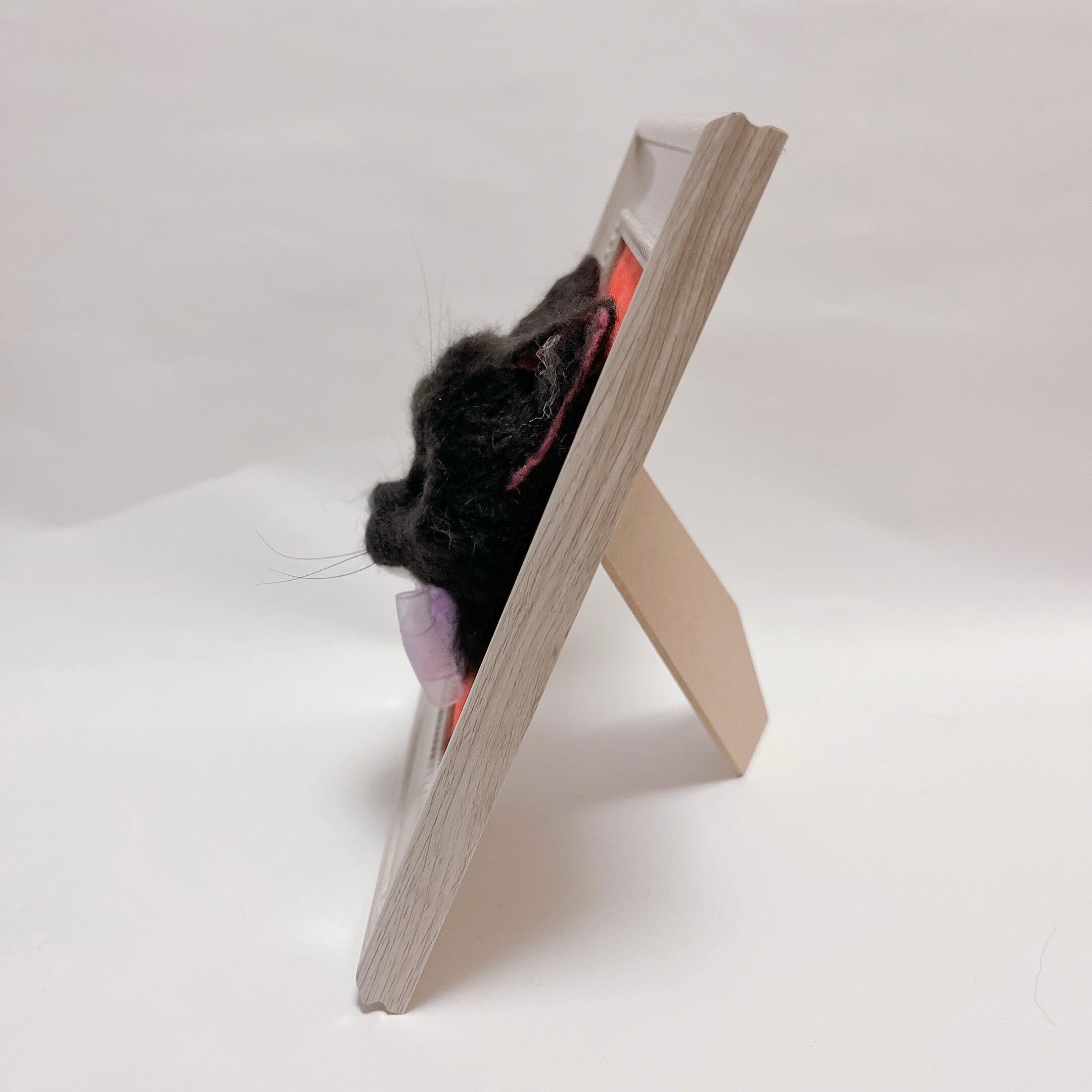 素材:羊毛フェルト、プラスチックアイ、猫髭、木製額縁