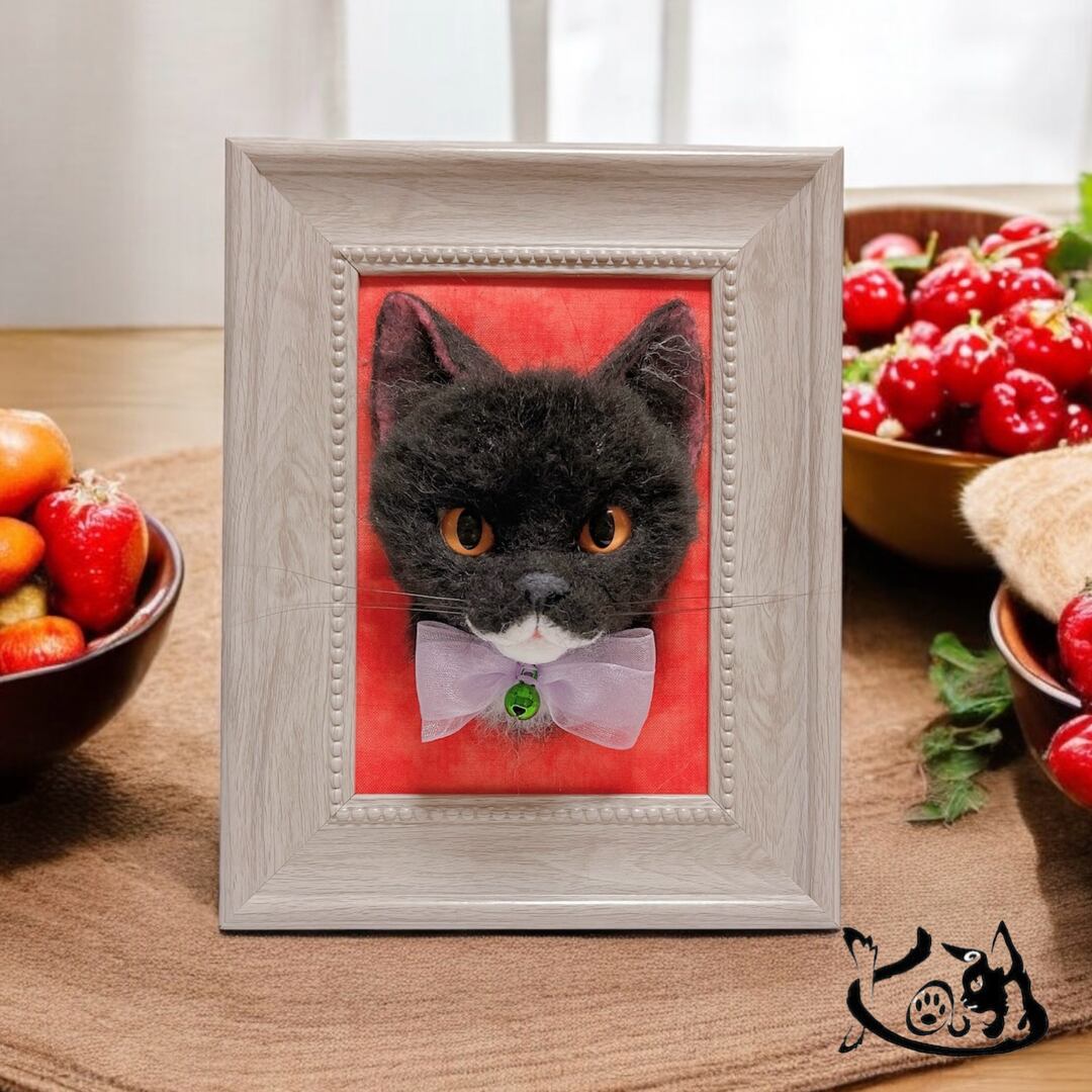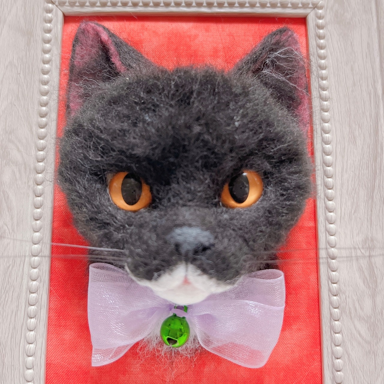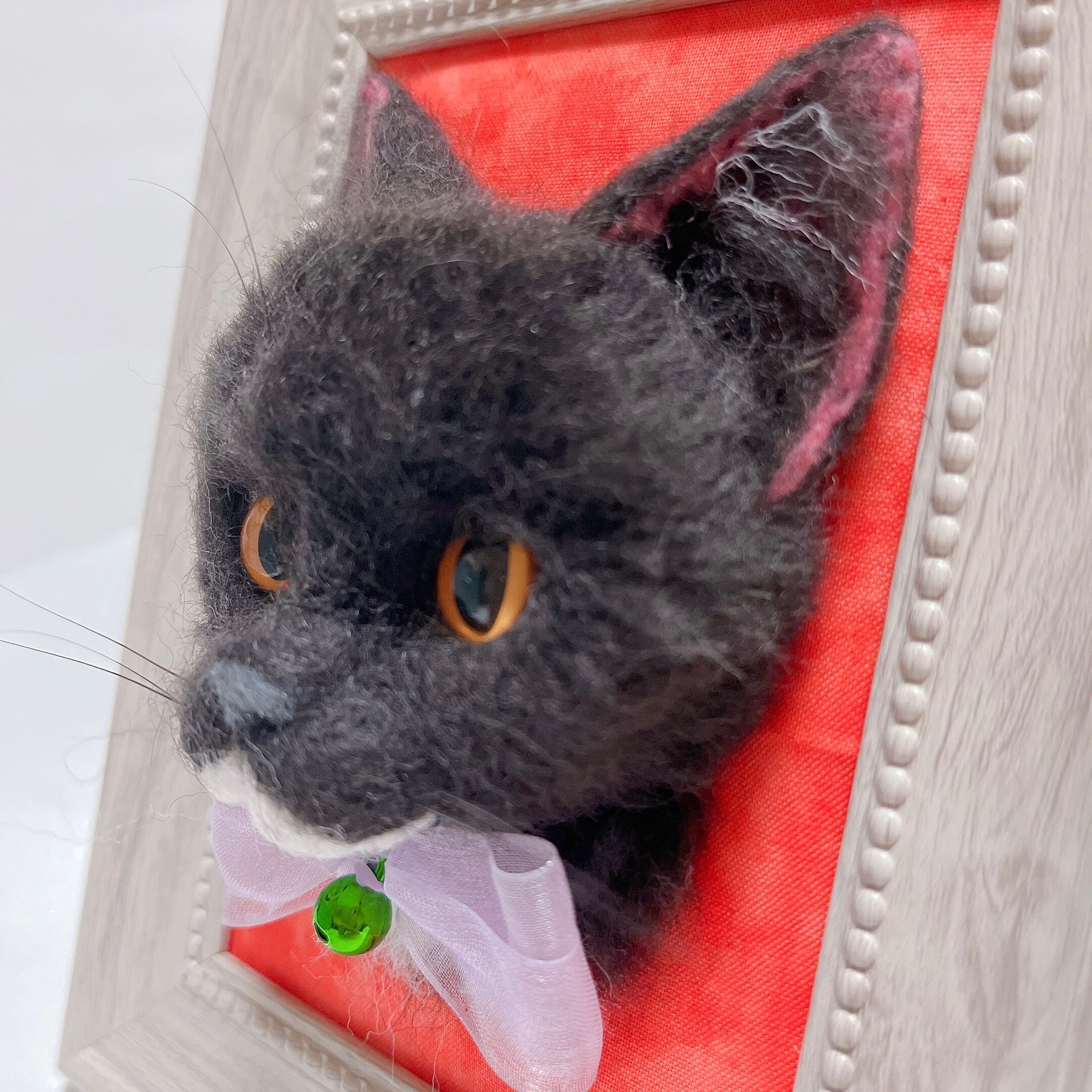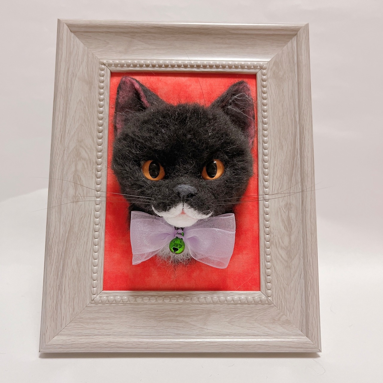 素材:羊毛フェルト、プラスチックアイ、猫髭、木製額縁